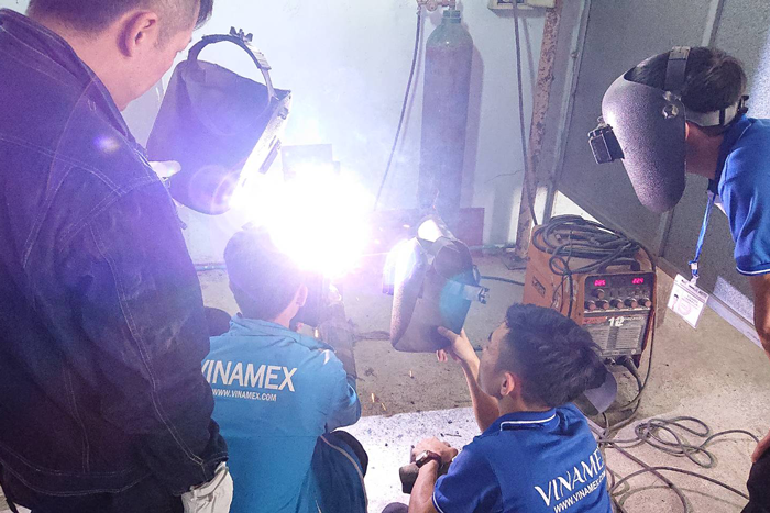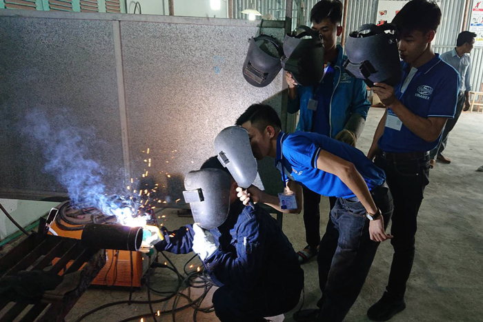 ベトナムの日本語学校における溶接作業指導